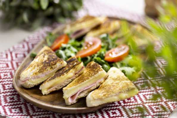 El “Croque Monsieur” -relleno de jamón y queso, cubierto de bechamel y al horno.