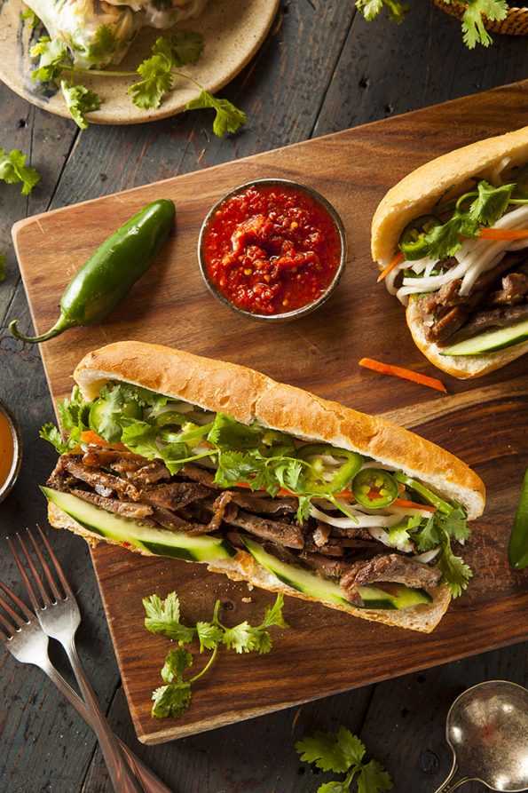 Sin desviar demasiado las coordenadas, viajamos a Vietman para encontrar el otro bocadilo estrella: el banh mi, un matrimonio entre la cultura francesa de Indochina y la nativa vietnamita traducido en carne, encurtidos, daikon, cilantro, pepino y mayonesa envueltos en pan de baguette. Aunque el bahn mi empezó a estar en boga en San Francisco hace algunos años, ha tardado en cruzar el charco; eso sí, no ha tenido ningún problema en encontrar adeptos rápidamente.