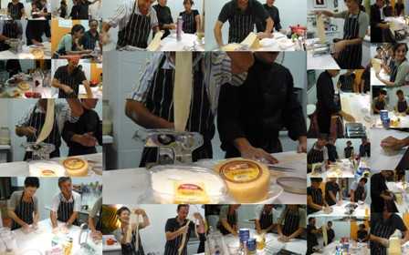 Hemos utilizado harina 00, harina de fuerza y harina de semola para que nuestros alumnos se dieran cuenta de las distintas texturas y hemos aliñado todo con una salsa hecha con unos estupendos quesos de Granja de la Sierra, desde Cantabria.